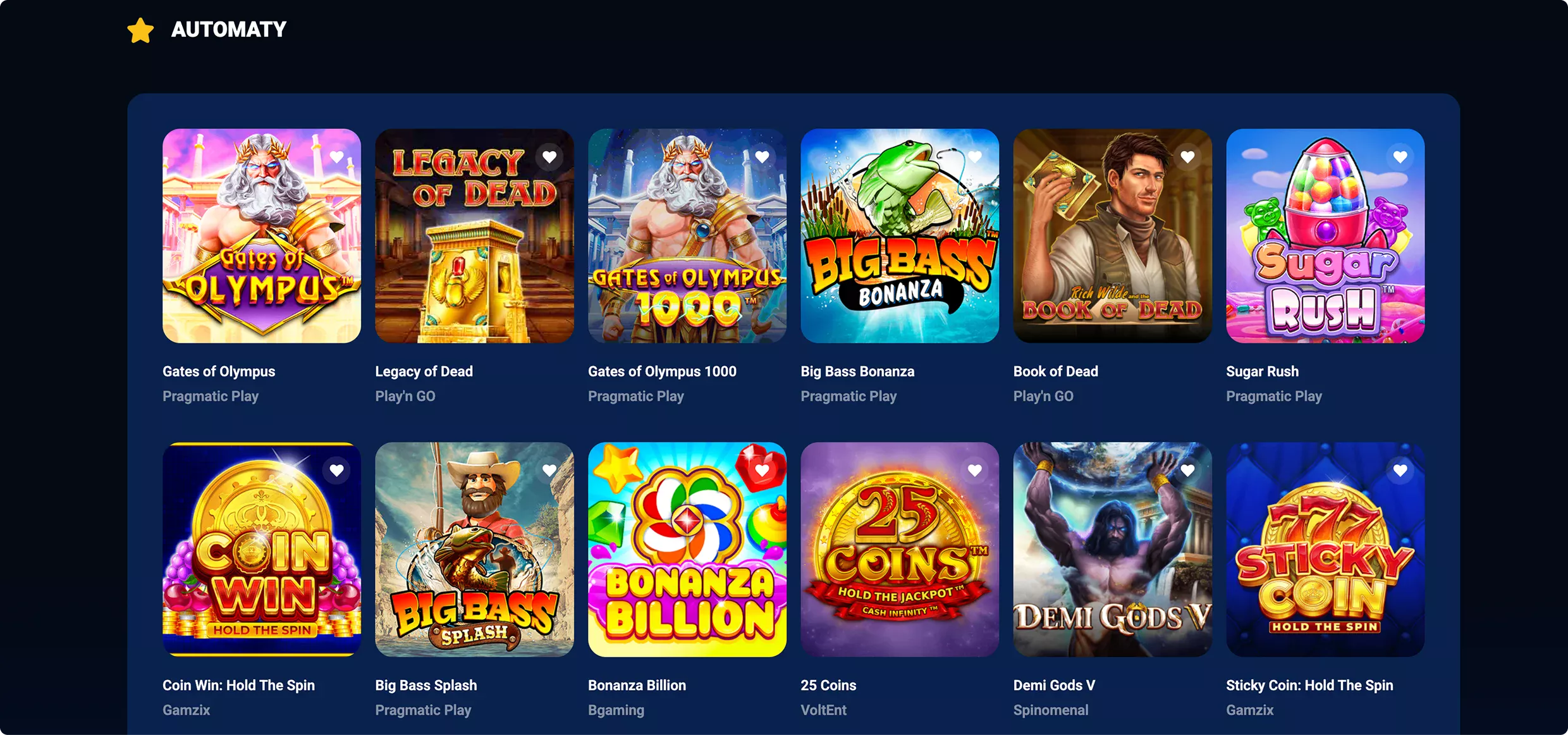 Popularne sloty stanowią zdecydowaną większość dostępnych gier losowych. Wszystkich pozycji jest około 10 000 i pochodzą one od 91 dostawców. Automaty dzielą się na wiele kategorii, dzięki czemu każdy szybko znajdzie dokładnie te pozycje, które mu najbardziej odpowiadają.