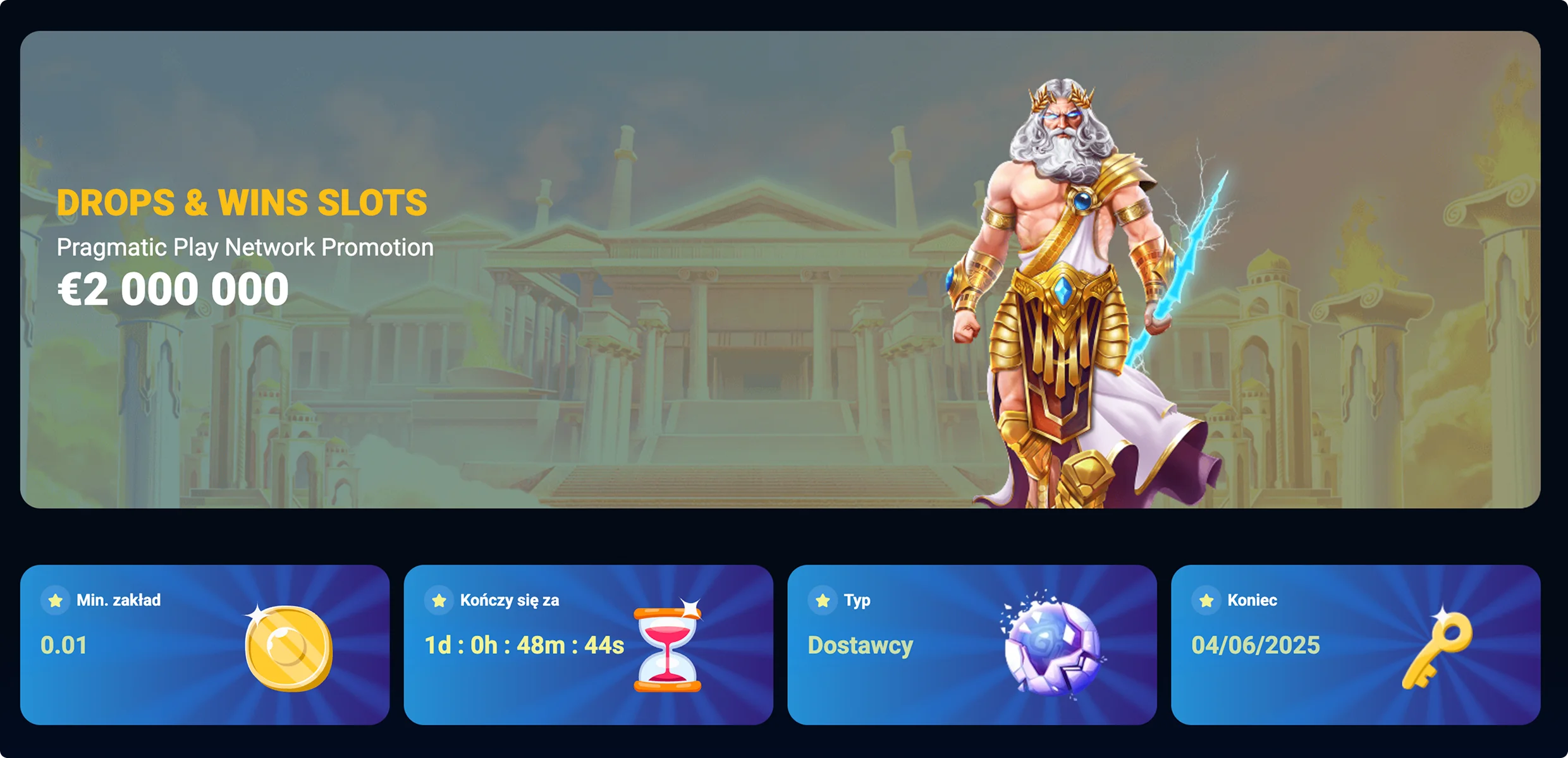 | Wins | min. zakład 0,01; gry turniejowe od Pragmatic Play | 2 000 000 € |