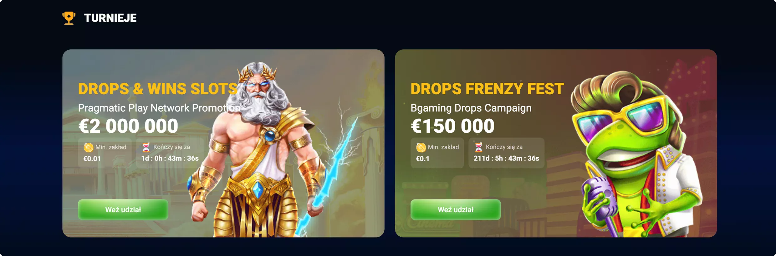 | Drops Frenzy Fest | min. zakład: 0,1; gry turniejowe od BGaming | 150 000 € |